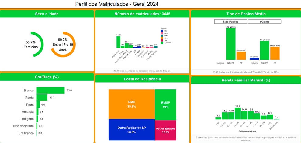 Os dados vieram da Comissão Permanente para os Vestibulares (Comvest) da Unicamp, que divulgou o balanço sobre os índices de inclusão social obtidos nas diferentes modalidades de ingresso nos cursos de graduação da Universidade. O percentual de estudantes pretos e pardos matriculados também subiu ligeiramente, passando de 30% (1.019 matriculados), em 2023, para 30,5%, em 2024, ou seja 1.071 estudantes, considerando todas as modalidades.
