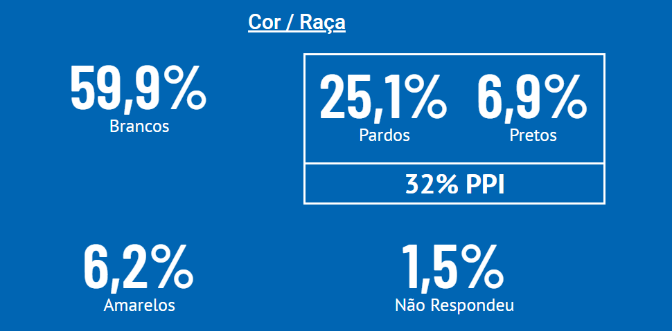 O total de ingressantes que pertencem ao grupo PPI (Pretos, Pardos, Indígenas) passou de 20,1% em 2023 para 32% dos matriculados em 2024, representando um aumento de 12 pontos porcentuais em comparação ao ano passado.