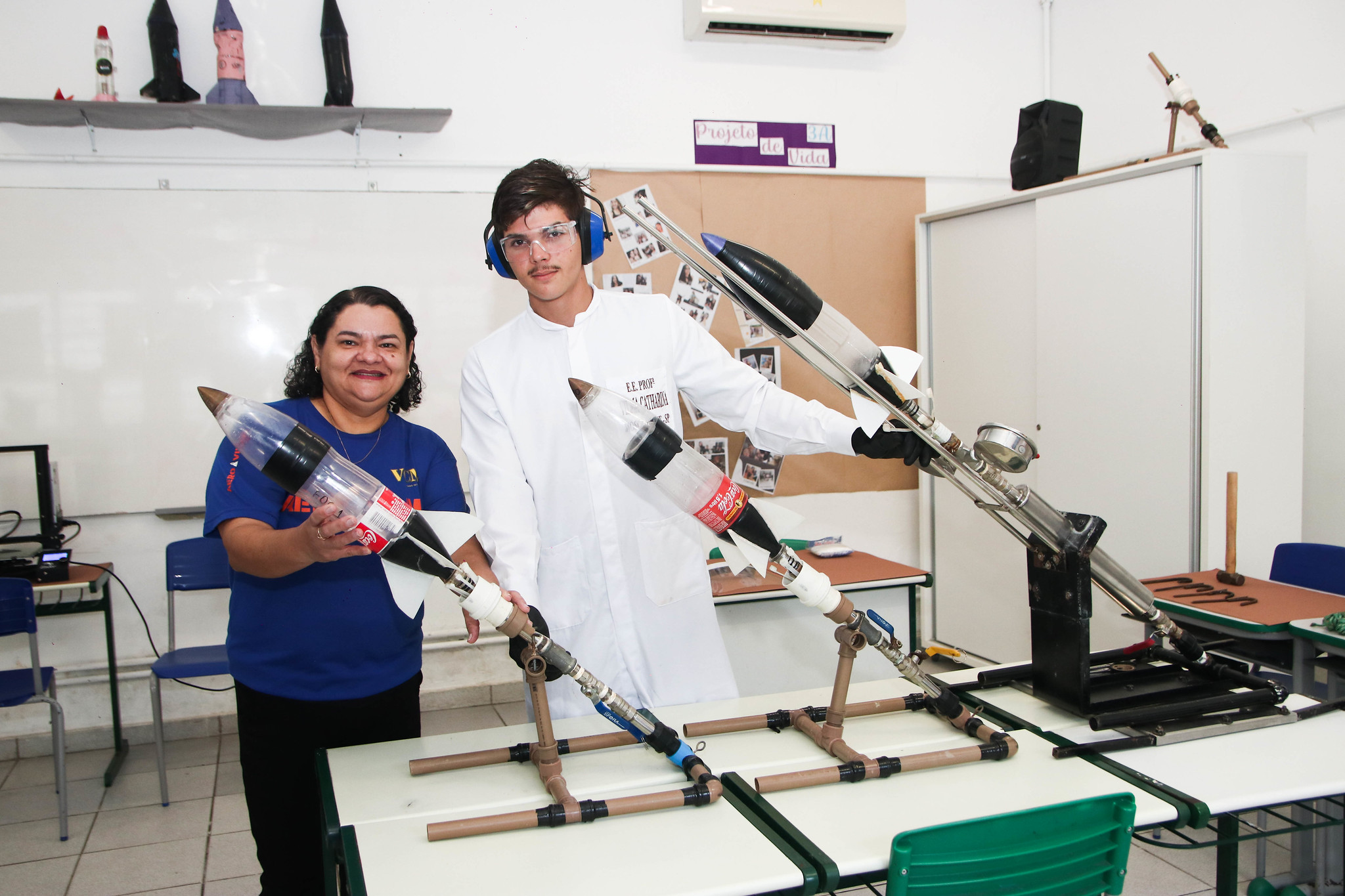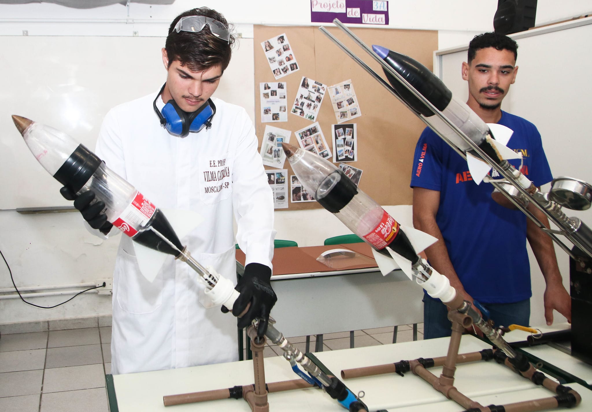 “Nosso laboratório foi montado em 2022 e ele facilita bastante para a construção dos foguetes pelos alunos. Além disso, conseguimos atrelar a teoria à prática nas áreas de física e química, no desenvolvimento e aprimoramento do combustível utilizado nesse projeto. Sem laboratório, nós até conseguiríamos construir um foguete, mas com desafios para linkar a teoria e a prática, o que demandaria mais tempo”, reconhece a professora.