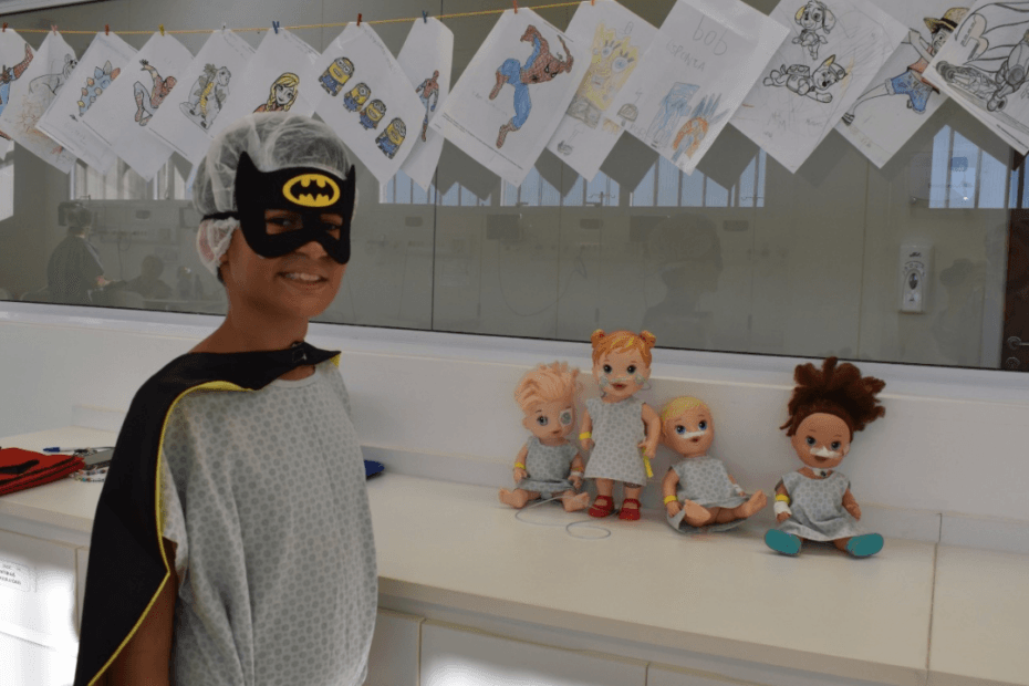 Ações lúdicas e criativas fazem parte do “Projeto O Grande Dia”, promovido pelo Hospital Regional do Litoral Norte, para minimizar a ansiedade e o medo entre as crianças antes dos procedimentos cirúrgicos. As atividades incluem kit médico de brinquedos, carrinhos, desenhos refletidos no teto da sala de atendimento, bolas de encher em formato de animais e fantasias de super heróis, entre outros. A iniciativa é conduzida pela equipe de médicos, enfermeiros, psicólogos e fisioterapeutas. O HRLN é uma unidade ligada à Secretaria de Estado da Saúde de SP (SES) e gerida pelo Instituto Sócrates Guanaes. Mensalmente são realizados mais de 30 procedimentos pediátricos.