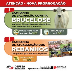 A medida se dá em nível estadual por conta do desabastecimento da vacina B19 em todo o país. “Laboratórios pararam de produzir o imunizante e outros estão retomando a produção. Por conta disso, faz-se necessária nova prorrogação a fim de não prejudicar produtores que não conseguiram imunizar as bovinas e bubalinas”, comenta Luiz Henrique Barrochelo, médico-veterinário e coordenador da Coordenadoria de Defesa Agropecuária (CDA) da Secretaria de Agricultura e Abastecimento (SAA).