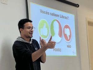 A Escola da Inclusão começa suas atividades com o curso virtual e gratuito Introdução à Libras, disponibilizando mil vagas por mês. Os alunos matriculados poderão acessar os conteúdos e aulas ministrados por professores surdos com formação específica na área e, ao final do curso, recebem o certificado de conclusão.