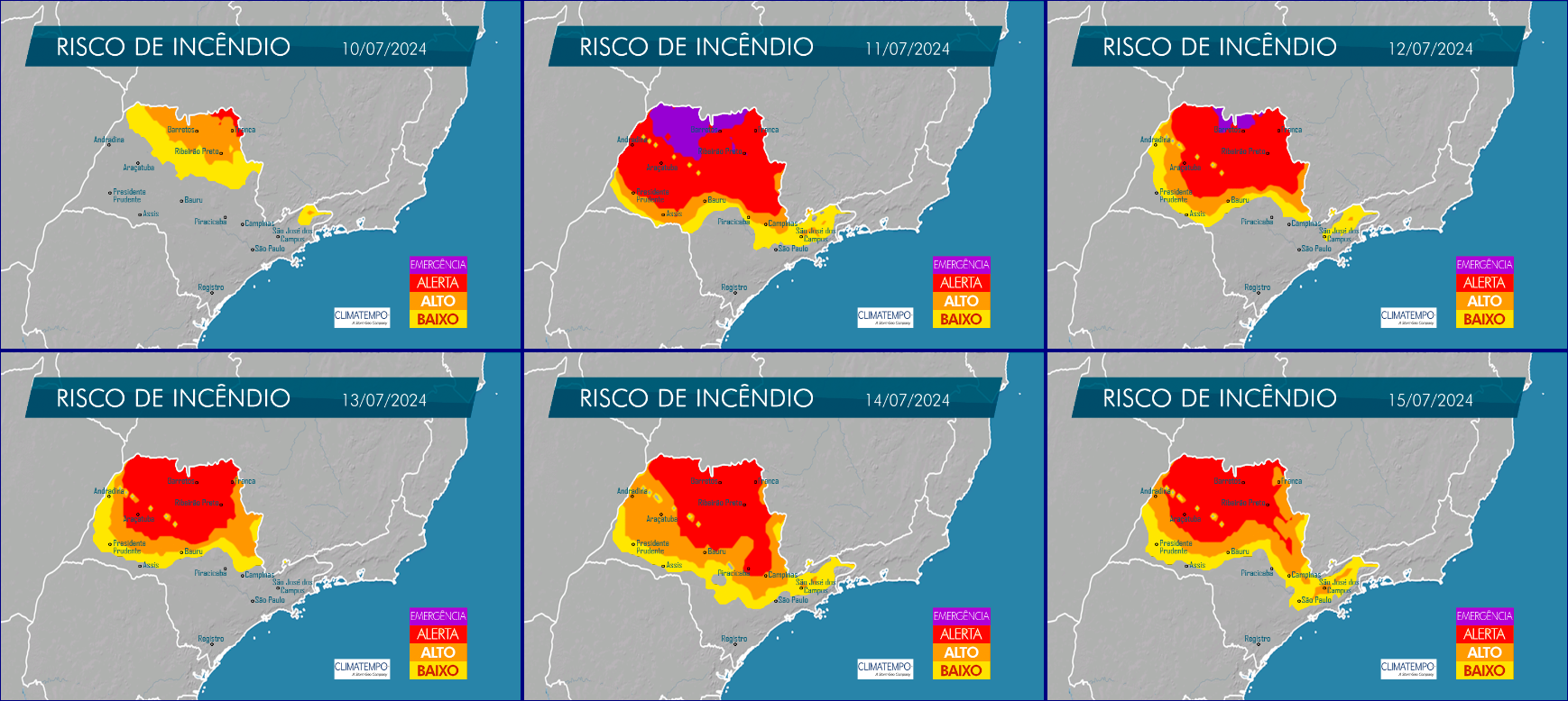Neste período de estiagem, o Centro de Gerenciamento de Emergências funciona 24 horas por dia monitorando os riscos para queimadas. Uma das ferramentas é o Mapa de Risco de Incêndio, que utiliza algoritmos que cruzam dados como umidade relativa do ar, temperatura, velocidade do vento e previsão de chuva, classificando as regiões com maior probabilidade de queimadas por meio de uma escala de cores.
