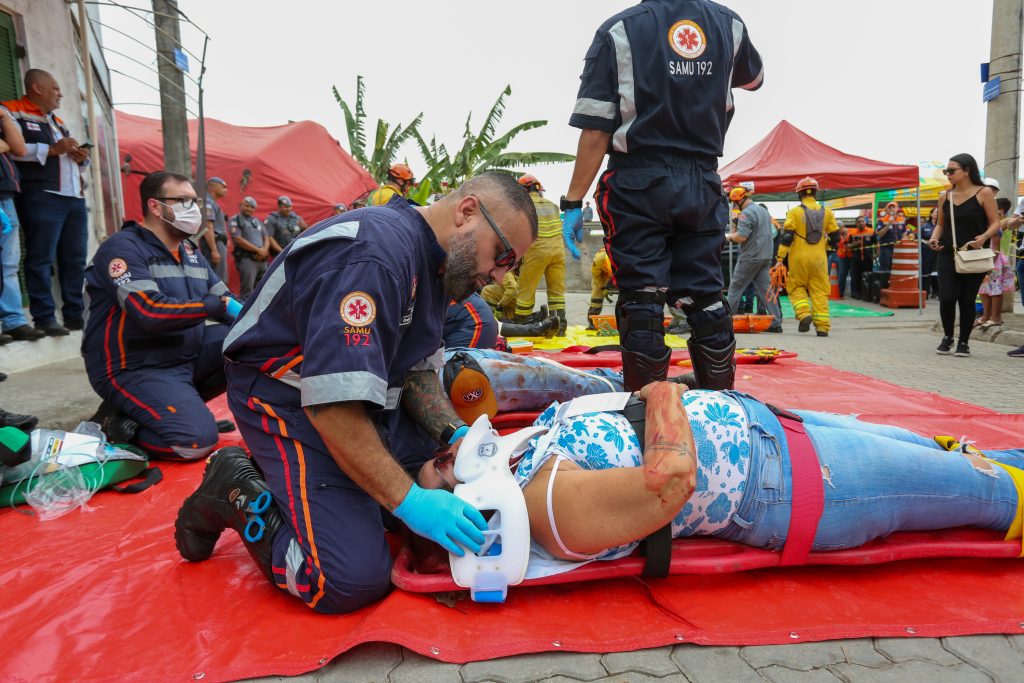 Simulando uma ocorrência real, o atendimento envolveu 150 profissionais da Defesa Civil, Polícia Militar, Corpo de Bombeiros, Polícia Técnico Científica, Samu, Departamento de Trânsito, GCM e Sabesp. A diretora da Defesa Civil, tenente coronel Claudia Bemi, coordenou as ações do treinamento. “As mudanças climáticas estão aumentando a quantidade de desastres, por isso, temos como meta ampliar o número de treinamentos e simulados, pois precisamos preparar a população para esse eventos extremos”, destacou Claudia.