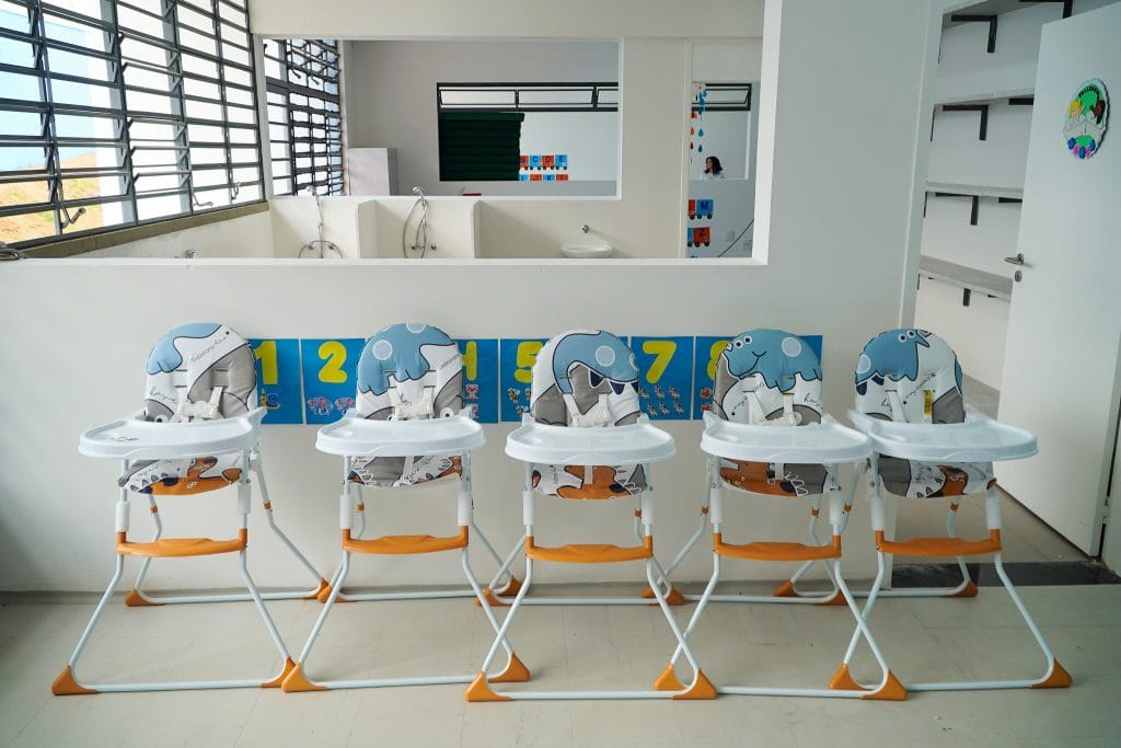 Área interna da nova creche em Jaguariúna. Foto: Sergio Barzaghi / Governo do Estado de SP