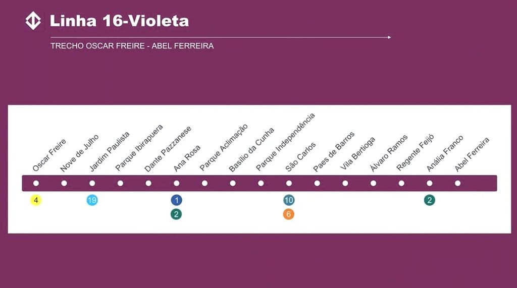 A fase um da nova linha de metrô contará com 16 estações e ligará a Estação Oscar Freire, na Zona Oeste, à Estação Abel Ferreira, na região do Aricanduva, na zona leste. O percurso será feito em 30 minutos, reduzindo em 60 minutos o trajeto atual. O projeto prevê ainda outra fase, da Estação Abel Ferreira até a Cidade Tiradentes.