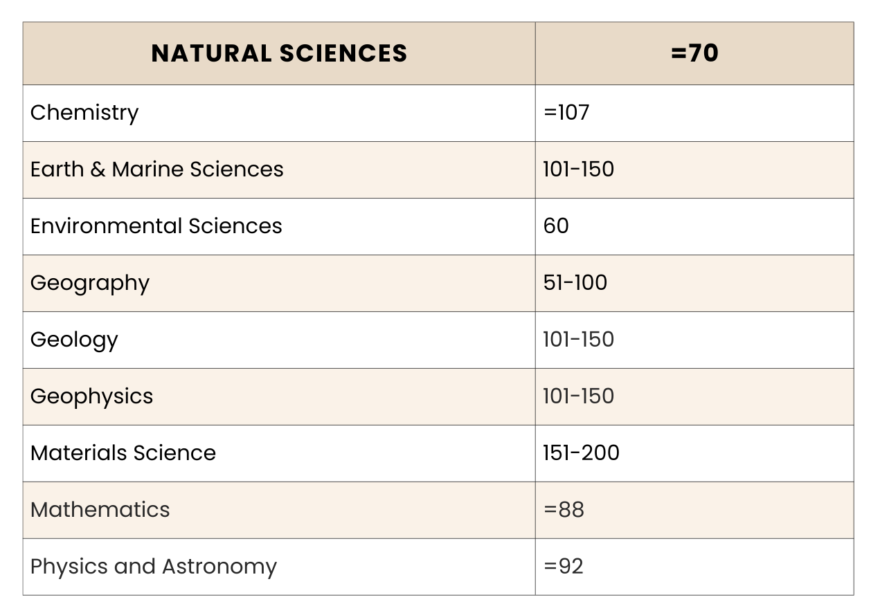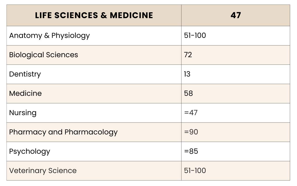 Confira a classificação da USP por áreas no QS World University by Subject 2025:
