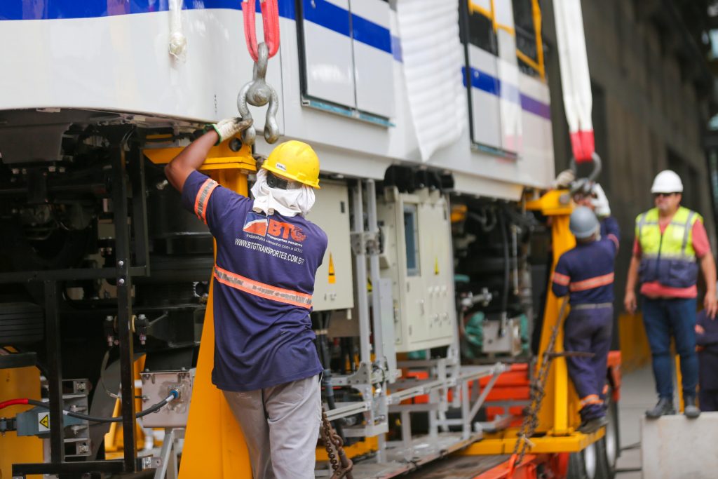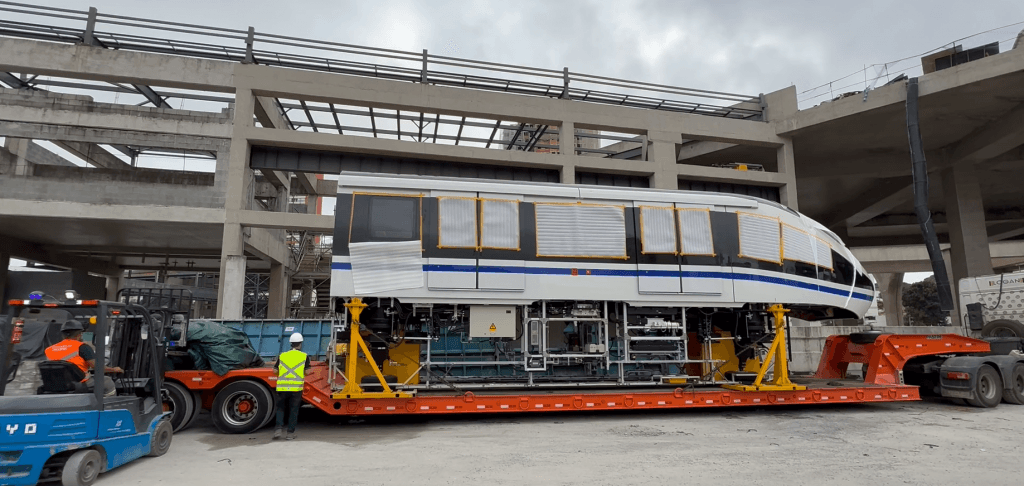 Na manhã deste domingo (16), o segundo trem da frota encomendada para a Linha 17-Ouro chegou no Pátio Água Espraiada, Zona Sul da capital, proveniente de Santos, transportada por meio de uma complexa operação logística composta de oito carretas – cinco designadas para os carros (vagões) e outras três para as estruturas de conexões.