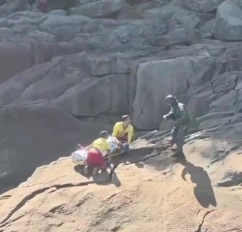 O Grupamento de Bombeiros Marítimo (GBMar) conseguiu alcançar a vítima por terra, realizar os primeiros socorros e estabilizá-la em uma prancha, mas a retirada foi inviável por causa do risco e à complexidade da trilha.
