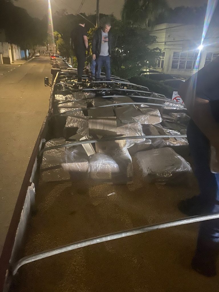Foram recolhidos mais de 1,7 mil tijolos de maconha. Os agentes ainda apreenderam notas fiscais e uma carteira de habilitação em nome de um homem, que agora é investigado por tráfico de drogas.