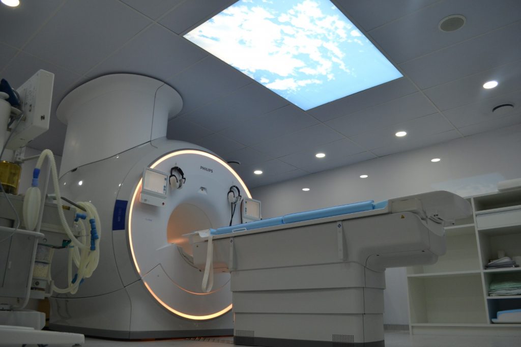 A nova máquina de ressonância magnética está no setor de Diagnóstico por Imagem, no segundo andar do HSPE. O espaço onde está o equipamento foi reformado e um painel com imagem do céu foi instalado no teto para ajudar a distrair os pacientes durante os exames. O novo dispositivo conta com funções de ajustes automatizados e duas macas específicas com o tampo da mesa – a parte superior do equipamento – removível. Esse recurso torna desnecessário transferir o doente de uma maca para outra, o que diminui o tempo de realização do procedimento sem exigir esforço do paciente.