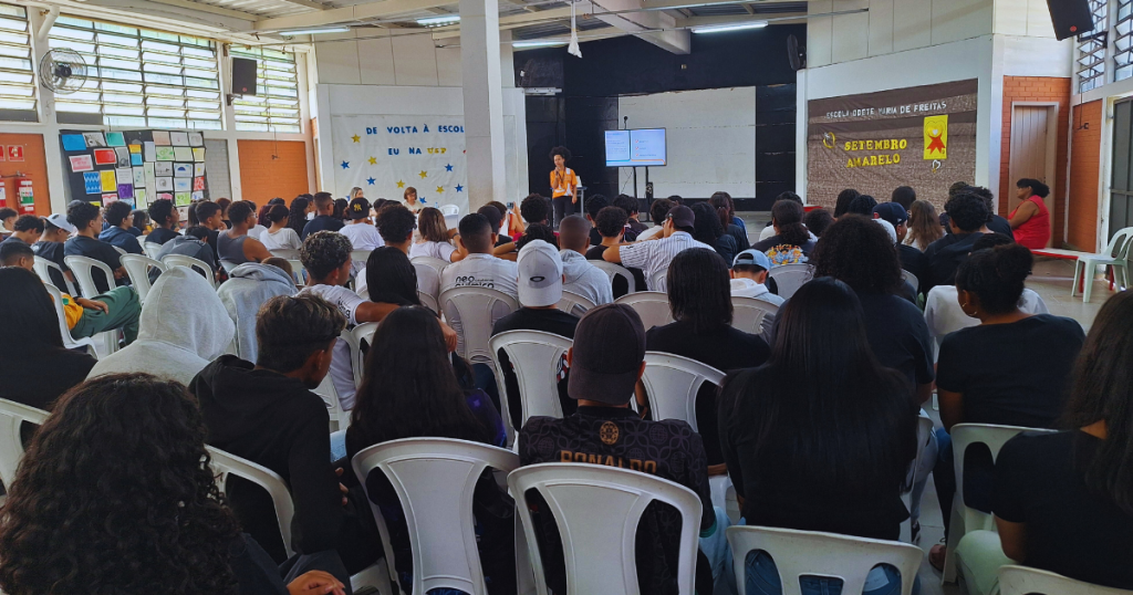 O programa Cultura na USP, da Rádio USP, esteve em um destes reencontros durante a primeira edição do projeto, realizada em 2024. Na ocasião, a estudante Paula Eugênia da Silva, que cursava o primeiro ano de Biblioteconomia e Ciência da Informação na Escola de Comunicações e Artes (ECA) da USP, retornou a Escola Estadual Odete Maria de Freitas, no município de Embu das Artes, e contou sobre a experiência e as oportunidades para seus colegas.