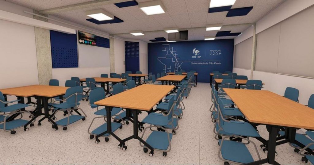 Outro projeto que está em fase de implantação é o da Escola de Engenharia de São Carlos (EESC), que vai reestruturar 50 salas e auditórios, com equipamentos e mobiliário adequados para proporcionar ambientes mais versáteis e compatíveis com a aplicação de metodologias ativas, que favoreçam a integração entre teoria e prática e a interdisciplinaridade.