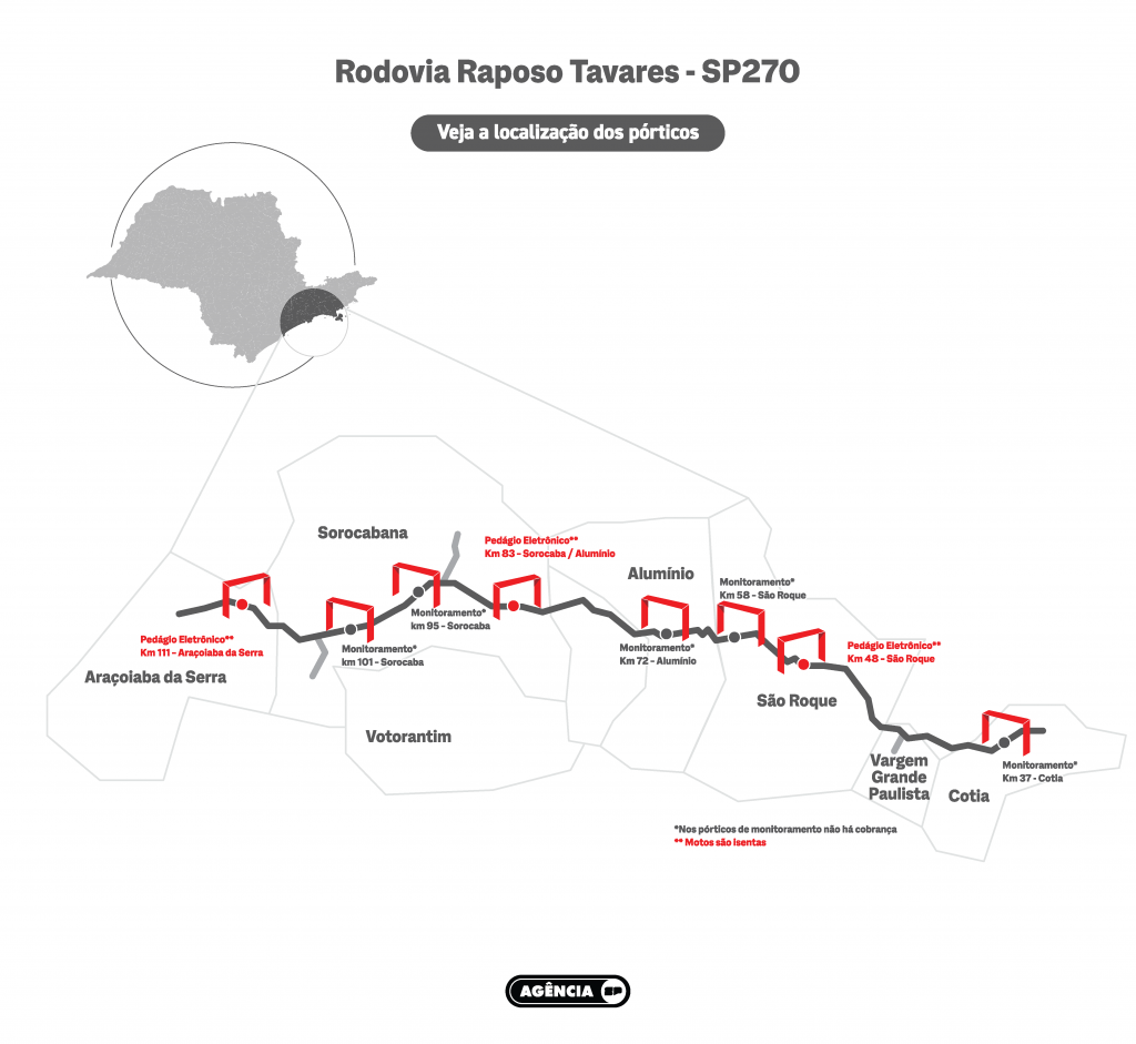 O Siga Fácil estará em três pontos da Rodovia Raposo Tavares (SP-270), administrada pela concessionária Sorocabana. Os pontos de cobrança são: