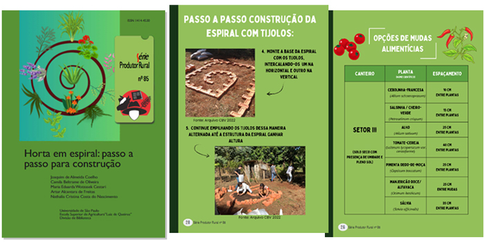 Horta em espiral: passo a passo para construção (série Produtor Rural, nº 85, 36 páginas), com autoria de Joaquim de Almeida Coelho, Camila Beltrame de Oliveira, Maria Eduarda Wotzasek Cestari, Artur Alcanta de Freitas e Nathalia Cristina Costa do Nascimento, está disponível clicando aqui.