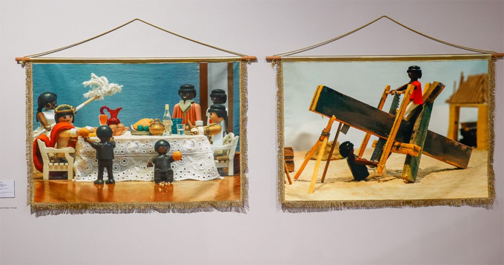 A releitura de Heberth Sobral, mineiro, chama a atenção por incorporar bonecos Playmobil, clássicos da sua produção, nas cenas de Debret. Com fotografia digital impressa em tela, o artista recria Um Jantar Brasileiro e Negros Serradores de Tábuas.