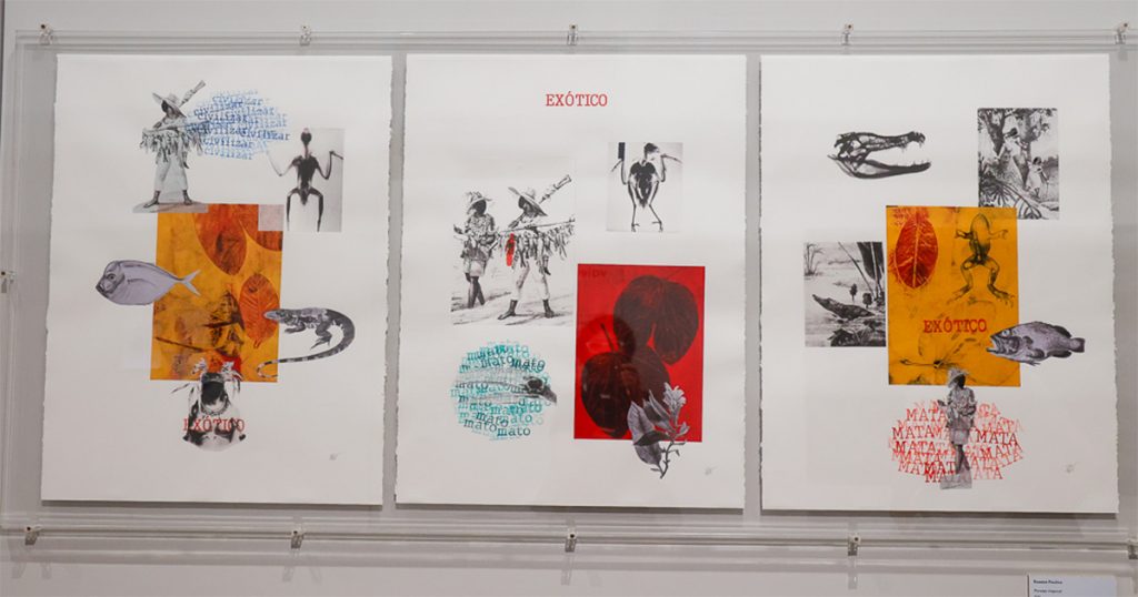 Uma das obras expostas é Naturaleza Muerta sobre Aldea de Canta Gallo, releitura de Aldeia de Caboclos em Cantagalo, de Debret. A contraposição entre as imagens divergentes provoca “um questionamento sobre a forma como olhamos, visando tirar o espectador do hábito de consumir imagens apressada ou automaticamente”, de acordo com o texto da mostra.