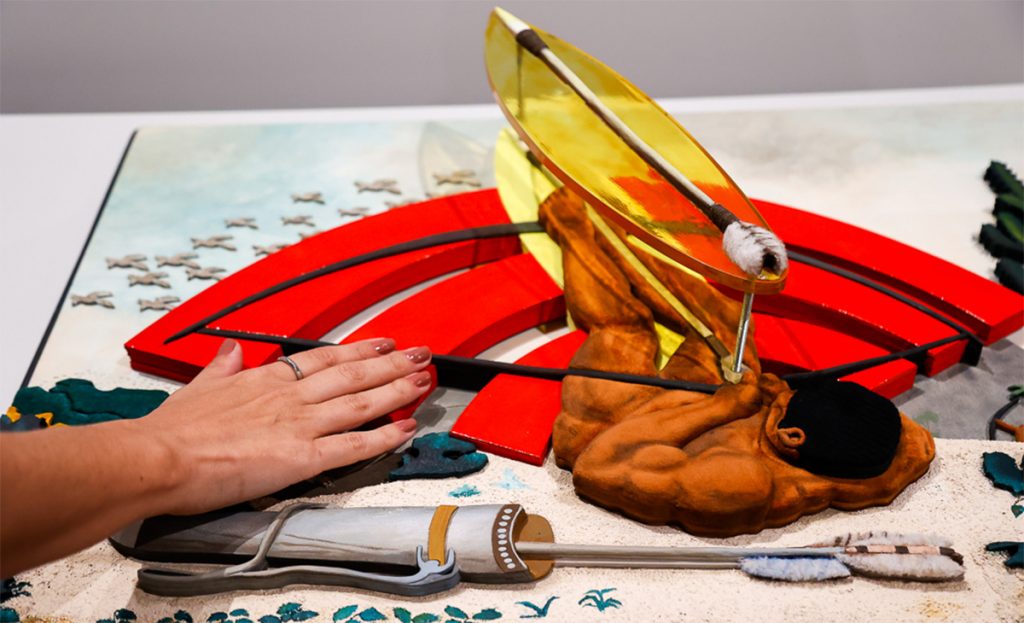Além dessa experiência sensorial, a exposição traz também reproduções de obras em relevo para o público “conhecer com as mãos”, entre elas Regresso de Um Proprietário de Chácara, de Debret, e uma releitura de Dalton Paula, Assentar Volta à Cidade Um Proprietário de Chácara. Caboclo, de Debret, também está disponível em reprodução tátil, ao lado da releitura de Baniwa Arqueiro Digital, em alto-relevo. Todas possuem descrição em braile.