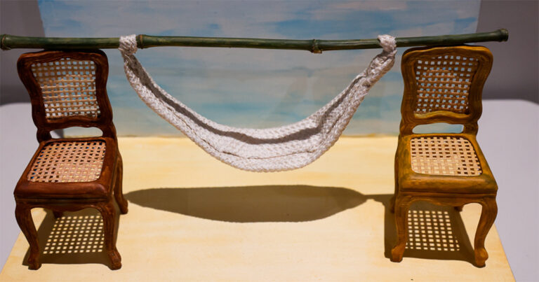 Sandra Gamarra Heshiki, natural de Lima, vive entre a capital peruana e Madri, na Espanha. O trabalho da artista questiona os processos do mundo da arte, inclusive a circulação, divulgação e exposição das obras. A artista reproduz gravuras de Debret como plano de fundo para cenas de natureza-morta.