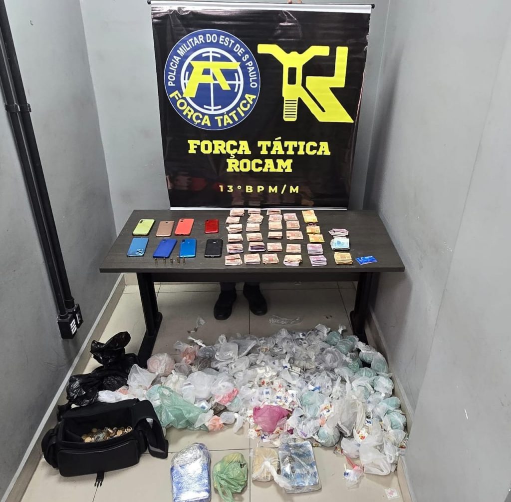 A Polícia Militar apreendeu grande quantidade de drogas, dinheiro, munições e material explosivo durante uma operação da Força Tática na Favela do Moinho, no bairro de Santa Cecília, região central de São Paulo, nesta sexta-feira (12). Três homens foram presos em flagrante.