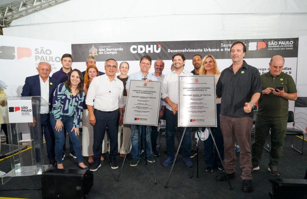 O Governo de São Paulo entregou, neste sábado (20), obras de habitação e infraestrutura urbana em São Bernardo do Campo, região metropolitana de São Paulo. Os conjuntos habitacionais Vila Esperança I e II beneficiam 176 famílias, com investimento estadual de R$ 31,7 milhões da Companhia de Desenvolvimento Habitacional e Urbano (CDHU). Já o Viaduto Estaiado Robert Kennedy-Piraporinha recebeu aporte de R$ 120 milhões do Governo do Estado e visa desafogar o trânsito em importantes vias do município.