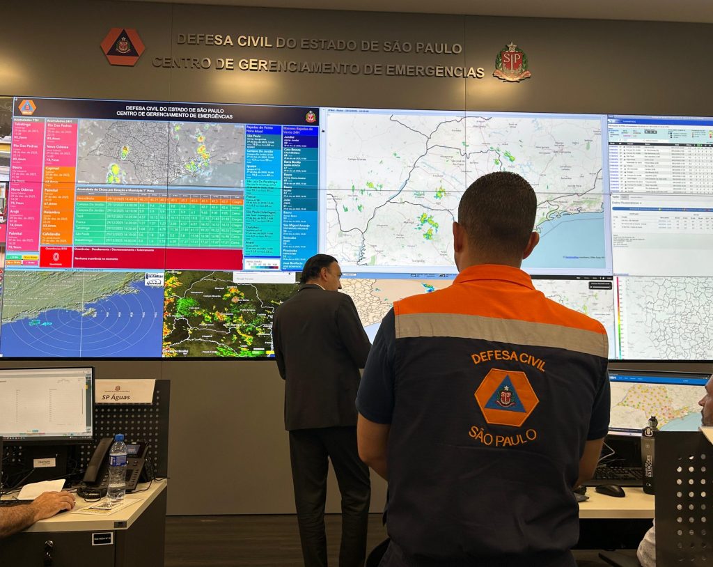 O Centro de Gerenciamento de Emergências (CGE) da Defesa Civil mantém operação ininterrupta, 24 horas por dia, sete dias por semana, com atuação integrada entre os órgãos estaduais, monitoramento constante das condições climáticas e emissão de alertas à população e às prefeituras.