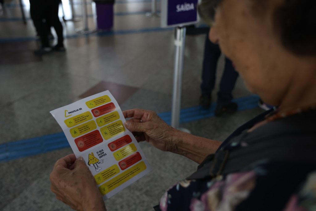 Os agentes entregam folhetos informativos e se colocam à disposição dos passageiros que buscam mais informações sobre as medidas que devem ser adotadas nesta época do ano.
