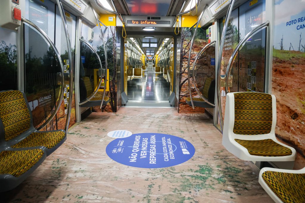 As composições da Linha 4-Amarela de metrô ganharam um visual personalizado com uma ação imersiva da campanha do Governo de São Paulo para urgência na economia do uso da água. A partir da desta segunda-feira (16), o trem estará envelopado com adesivos para conscientizar milhares de passageiros que usam o sistema todos os dias sobre a gravidade da situação e a necessidade de reduzir o consumo. A iniciativa faz parte da campanha “Gota por gota. Mais do que Nunca”, lançada neste mês.