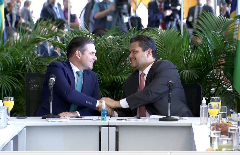 Hugo Motta participou, nesta quinta-feira (5), de evento com as bancadas dos três estados (AP, RO e RR) e com o presidente do Senado, Davi Alcolumbre (União-AP), para informar o início da tramitação da proposta na Câmara.