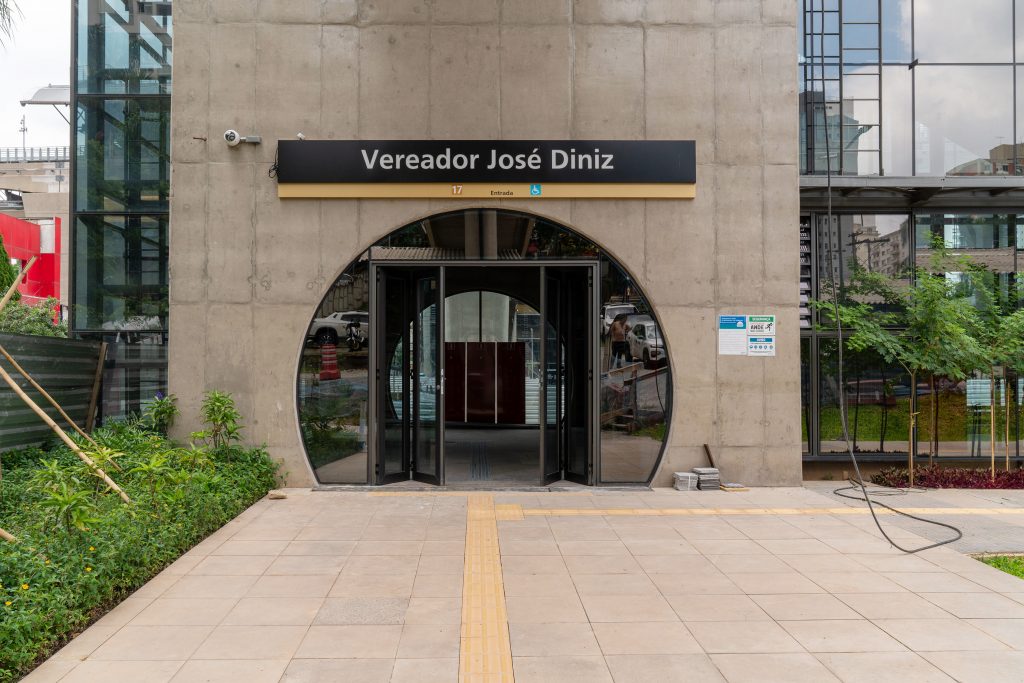 A Estação Vereador José Diniz possui plataforma central de 60 metros e dois acessos na Avenida Jornalista Roberto Marinho, próximos às ruas Barão do Sabará e Sargento José Roque da Silva. Projetada para garantir conforto e acessibilidade plena, a estação conta com pisos táteis, elevadores, escadas rolantes e circulações que facilitam o deslocamento dos passageiros. A demanda prevista é de pouco mais de 4 mil passageiros por dia útil.