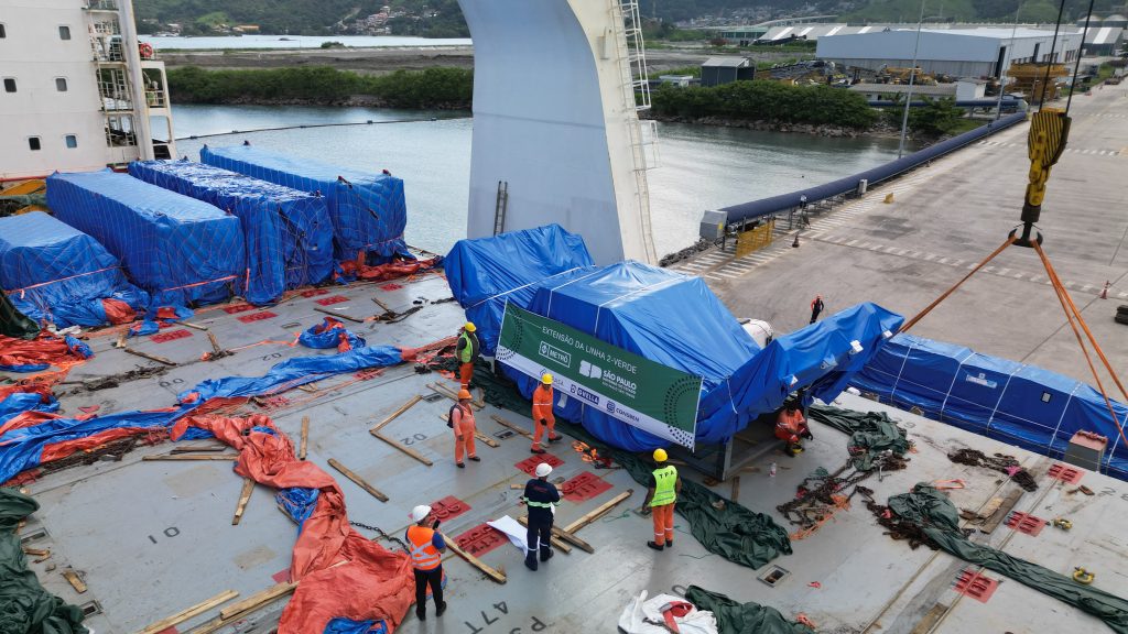 A nova tuneladora da expansão da Linha 2-Verde do Metrô chegou ao Brasil na última sexta-feira (6), após desembarcar no Porto de São Sebastião, no Litoral Norte de São Paulo. O equipamento iniciou a viagem no fim de janeiro, sendo trazido desmontado do porto de Taicang, na China. Conhecida popularmente como “tatuzão”, a máquina será responsável por escavar cerca de 7 quilômetros de túneis entre as futuras estações Penha, na capital, e Dutra, na divisa com o município de Guarulhos.
