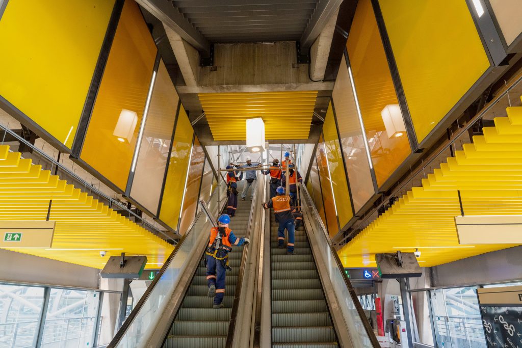 Com cerca de 95% de avanço físico, a estação já conta com suas principais estruturas civis concluídas, incluindo plataforma, mezanino, acessos e áreas de circulação. As equipes seguem atuando nos serviços finais de acabamento, na instalação dos últimos equipamentos e na integração dos sistemas operacionais, etapa fundamental para a preparação dos testes dinâmicos que antecedem a operação assistida do primeiro trecho da Linha 17‑Ouro.